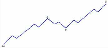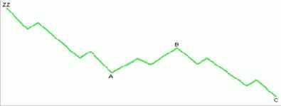 Зигзаг - это 3-волновая структура, помеченная буквами A-B-C, в целом движущаяся против основной тенденции. Это один из самых распространенных паттернов Эллиотта.