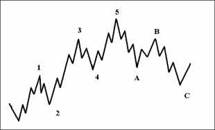 Гипотеза, сформулированная Ральфом Эллиоттом, заключается в том, что рынкам свойственно развиваться циклически, в виде стандартной последовательности волновых движений.