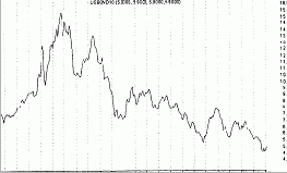 Известно, что в последние годы курс доллар/йена определялся большой разницей процентных ставок в Японии и США. Благодаря очень низким процентным ставкам в Японии, японские финансовые структуры имели возможность заимствовать большие объемы йены под очень малые проценты (ниже 0,5% годовых) и, конвертируя их в доллары, приобретать государственные ценные бумаги США, имеющие высокую доходность (более 5% годовых). Такие направленные на извлечение дохода операции привели к сильному снижению курса йены по отношению к доллару к середине 1998 года (до 147 йен за доллар см. Рис. 2.3.).