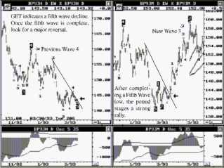 - Когда Пятая Волна устанавливает новые максимальные цены, удостоверьтесь, что Осциллятор Эллиота изображает дивергенцию с пиком Третьей Волны.