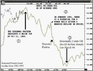 - Сезонная Модель свидетельтвует о медвежьей перспективе для Сырой Нефти в первый квартал 1994 года. В течение данного периода Сырая Нефть должна инсценировать подъём (в пределах медвежьего понижения) до начала Января 1994 года.