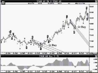 Когда Осциллятор Эллиота возвращается к нулю, попытка установления новых максимальных цен в Пятой Волне является, обычно, следующей моделью.Для открытия позиции применяйте Трендовые Каналы Регрессии.Применяйте Трендовые Каналы Регрессии, чтобы защитить порождаемую прибыль. Комбинирование Анализа Волны Эллиота с Трендовыми Каналами РегрессииИюль 96 Соевые Бобы. Покупка Второго и Первого Типа