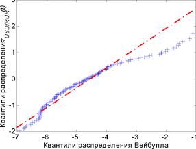 1) На нормальном рынке FX при умеренных значениях уровня достоверности (до 97%) все модели практически одинаково пригодны для использования с точки зрения точности модели. Наиболее точными являются модели EW97 (0.97 - оптимальный параметр для этого рынка), GARCH и EVT (для этого рынка распределение Вейбулла практически совпадает с нормальным).
