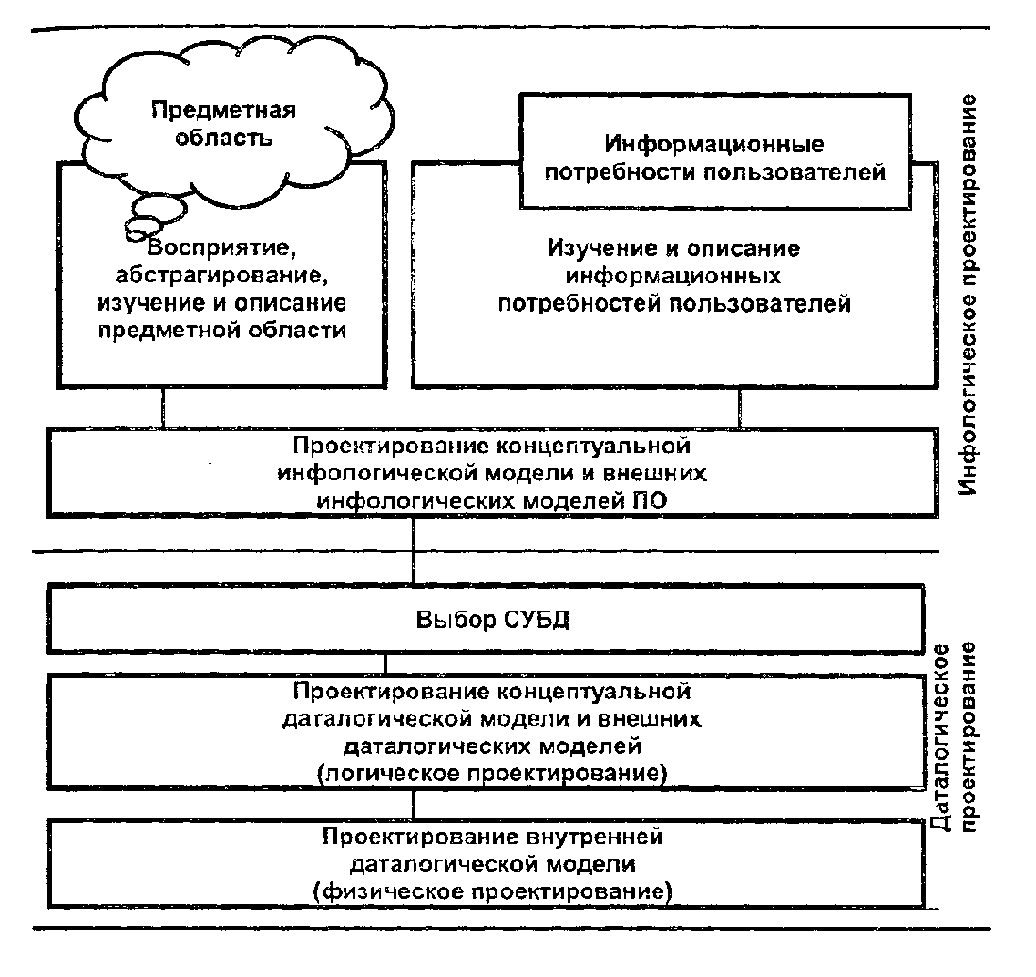 Вкратце следует остановиться на действиях, выполняемых на каждом из указанных этапов жизненного цикла приложения базы данных.