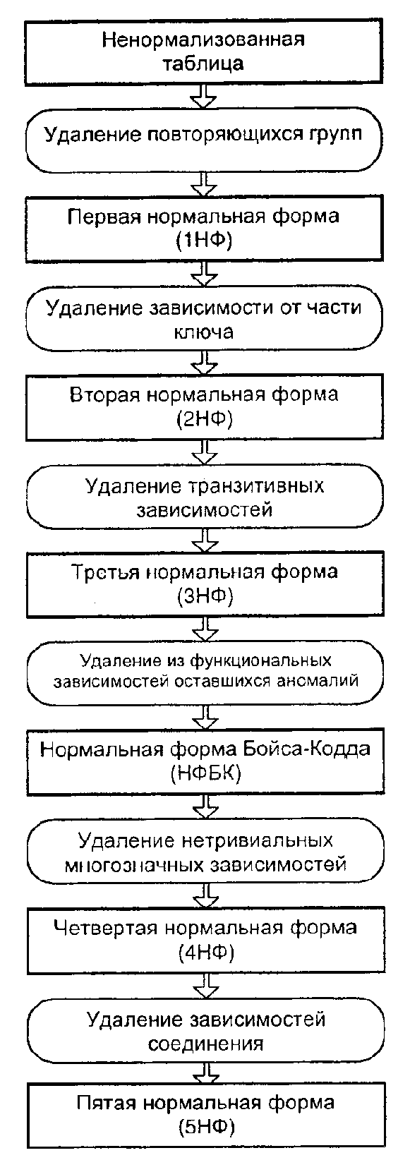 -й нормальной форме, состоит в исключении этих недостатков.При реализации реляционной БД важно понимать, что только удовлетворение требований первой нормальной формы (1НФ) обязательно для создания отношений приемлемого качества. Все остальные формы могут использоваться по желанию проектировщика. Однако чтобы избежать аномалий обновления, описываемых ниже, нормализацию рекомендуется проводить как минимум до 3НФ.