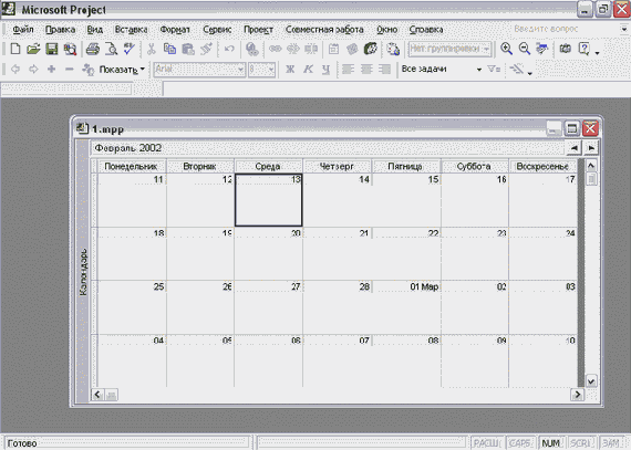 Для быстрого изменения формата временной шкалы (без вызова окна Zoom (Масштаб)) стоит воспользоваться кнопками Zoom In (Увеличить) и Zoom Out (Уменьшить), расположенными на панели инструментов Standard (Стандартная). Первая кнопка, представленная лупой со значком «+», заменяет единицы измерения более мелкими (например, недели на дни), увеличивая детализацию. Вторая, представленная кнопкой со значком «-», уменьшает детализацию, заменяя единицы измерения на более крупные (например, дни на недели).