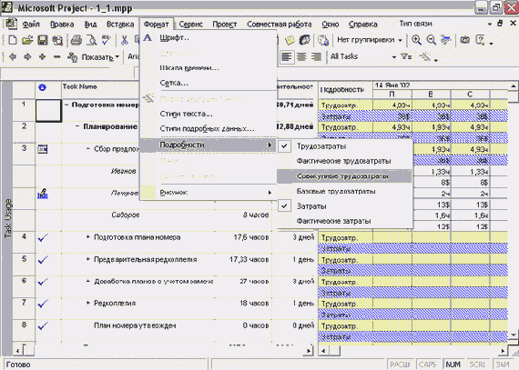 Используя команды подменю Format > Details (Формат > Подробности), для формы с информацией о задаче можно просматривать и редактировать информацию как о задействованных в задаче ресурсах, так и о связях задачи с другими задачами проекта.