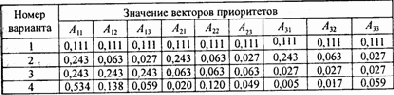 Таблица 5. 19 Значение векторов приоритетов функциональных композиций
