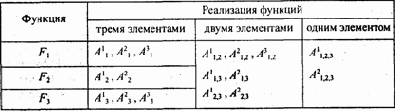 Указанные функции в общем случае могут быть реализованы на основе трех или двух альтернативных элементов или же на основе одного элемента (табл. 5.21). Далее генерируются все возможные сочетания функций и для каждого сочетания подбираются альтернативы, которые сводятся в матрицу (табл. 5.22). Верхние индексы в матрице соответствуют порядковому номеру альтернативы, а нижние — номерам функций, которые реализуются альтернативами.