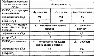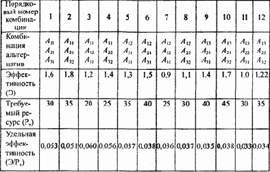 Каждая альтернатива Аij морфологической таблицы имеет оценку ее выгод (достигаемой эффективности) и оценку требуемых для реализации издержек, которые выражены в денежных единицах, т.е. каждой Аij Î {Bij; Иij}, где Bij, Иij — значения в денежных единицах выгод и издержек.