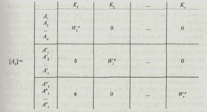Пусть задана морфологическая таблица (табл. 5.23), содержащая в качестве наименований строк три обобщенные функциональные подсистемы. Каждая подсистема имеет по три альтернативы Аij для реализации первых. Все альтернативы оценены по одному множеству критериев качества К1, К2 и K3. Значения критериев качества для альтернатив приведены в соответствующих ячейках матрицы. В качестве конкурирующего варианта определена система, состоящая из альтернатив (A11A21A31). Альтернативы конкурирующего объекта по условию задачи не могут присутствовать в синтезируемых системах, подлежащих сравнению с первым. Таким образом, на морфологической матрице в результате синтеза получено 2×2×2=8 отличающихся друг от друга вариантов.
