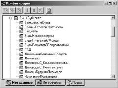 В свою очередь, каждая компонента системы "1С: Предприятие" расширяет возможности системы за счет поддержки специальных объектов. В частности, в компоненту "Бухгалтерский учет" встроены механизмы манипулирования следующими видами объектов метаданных: