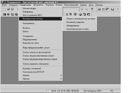 Подготовку информационной системы к эксплуатации завершает ввод входящих остатков на счетах. Для этого сначала сопоставляют рабочий план счетов, применяемый организацией, с планом счетов компьютерной бухгалтерии 7.7 и составляют схему переноса остатков. Если по счету (субсчету) плана счетов компьютерной бухгалтерии предусмотрен аналитический учет по видам субконто типа "Справочник" и этот счет предполагается использовать в учете, то соответствующие справочники заполняют актуальной информацией на дату ввода входящих остатков. Например, принято решение начат учет в компьютерной бухгалтерии с 1 января текущего года. Допустим, что по данным бухгалтерского учета по состоянию на : января имелись, в частности, остатки по счетам 01 "Основные средства" и 02 "Амортизация основных средств". В этом случае заполняют справочник "Основные средства".