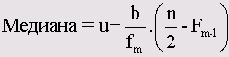 Для процентиля 50 % (Р = 50) после некоторых преобразований получается формула для медианы, приведенная выше.