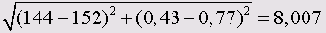 В соответствии с этой формулой расстояние между сортами пива Budweisei Heineken составляет: