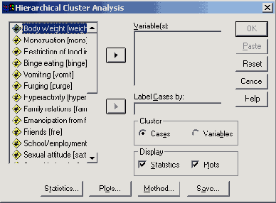 Вы увидите диалоговое окно Hierarchical Cluster Analysis (Иерархический кластерный анализ) (см. рис. 20.3).