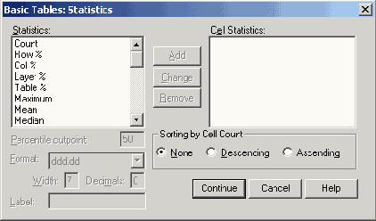 В диалоговом окне Tables of Frequencies: Statistics (Таблицы частот: Статистики) Вы можете активировать и другие форматы отображения количества и процентов.