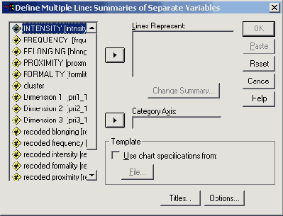Если Вы поместите какую-нибудь переменную в поле Set Markers by: (Установить маркеры для:), то согласно принадлежности к этой переменной отдельные точки значений на диаграмме будут представлены окрашенными в другой цвет или помечены при помощи какого-либо отличительного маркировочного символа.