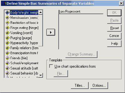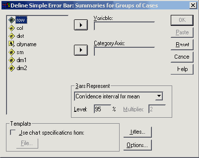 В диалоговом окне Error Bar (Столбики ошибок) вновь щёлкните на области Simple (Простая), но теперь поставьте маркер возле опции Summaries of separate variables (Обработка отдельных переменных).