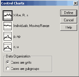Откроется диалоговое окно Control Charts (Контрольные карты).