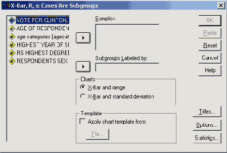 Рис. 22.59: Диалоговое окно Control Charts (Контрольные карты)
