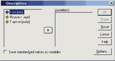 Диалоговое окно Descriptives