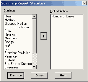 Диалоговое окно Summary Report: Statistics