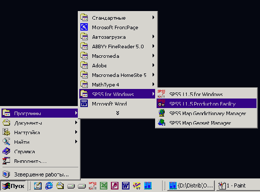 Из стартового меню рабочего стола запустите операционный модуль SPSS (SPSS 10.0 Production Facility) (см. рис. 26.2).