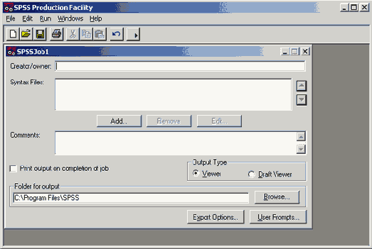 Диалоговое окно SPSS Production Facility (Операционный модуль SPSS)