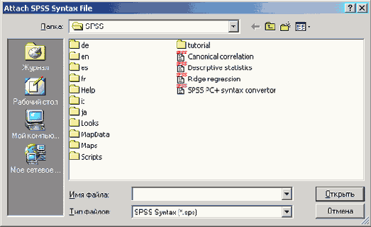 Диалоговое окно Attach SPSS Syntax File (Вложить файл синтаксиса SPSS)
