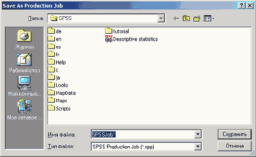 Наберите имя файла C:\SPSSBOOK\clasjob.spp и покиньте диалоговое окно нажатием кнопки Save (Сохранить).