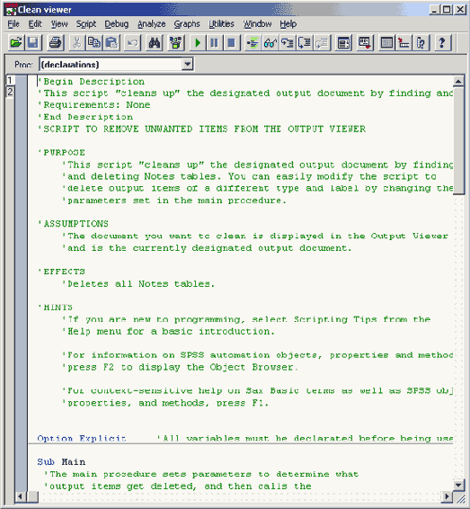 Кроме того, использование сценариев при работе с SPSS только начинает набирать обороты и сценарии поставляемые вместе с SPSS кажутся ещё не слишком продвинутыми. Однако, следить за сообщениями фирмы SPSS всё же полезно; время от времени в журнале для пользователей "SPSS direct" представляются новые сценарии, которые можно интегрировать в программу.