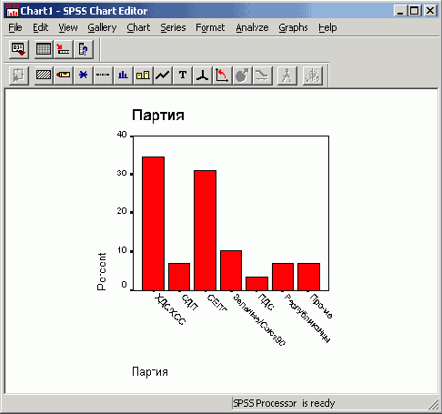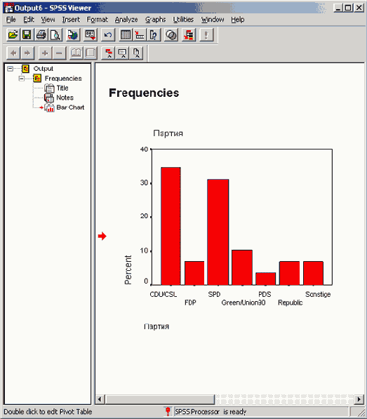 Сначала мы построим частотное распределение для переменной partei. Выполните следующие действия: