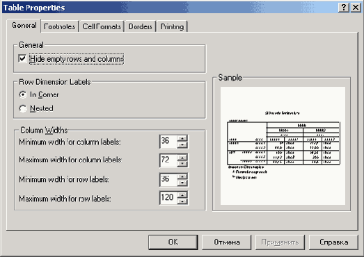 Output Labels (Обозначение выводимых значений): Вы можете выбрать, будут ли для обозначения переменных указываться их имена или соответствующие метки (установка по умолчанию) или и то и другое одновременно. Для обозначения категорий переменной вы можете выбрать значение переменной или метку значения (установка по умолчанию) или оба варианта одновременно.