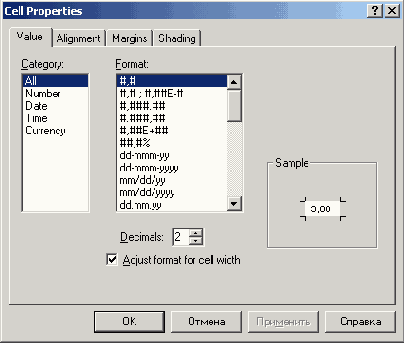 Currency (Денежная единица): здесь можно указать денежный формат (см. гл. 3.4.1).
