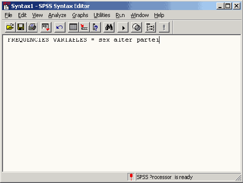 Перенесите переменную partei (партия) в поле целевых переменных. Щёлкните на переключателе Paste (Вставить). Установки диалогового окна будут перенесены в редактор синтаксиса.