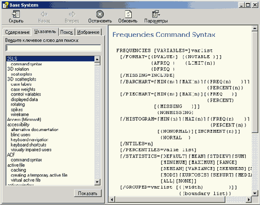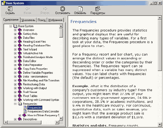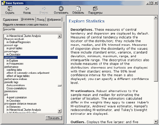Щёлкните на переключателе Help (Справка). Откроется диалоговое окно справки SPSS (см. рис. 4.31).