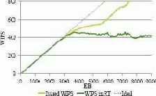 WIPS(EB): Пропускная способность допустимых запросов в одну секунду в зависимости от числа эмулируемых браузеров (EB). Чем выше, тем лучше. (Как объяснялось в предыдущем подразделе, "допустимым запросом" считается запрос, время выполнения которого соответствует установленным требованиям.)