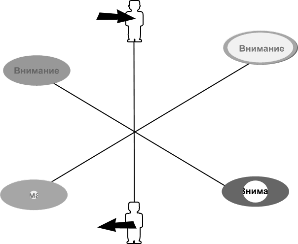 При этом фокус внимания довольно широк. Точно так же в шуме метро можно настроиться как на голос одного человека, так и вообще на разговоры всех людей в вагоне. Это – игра с размером фокуса.