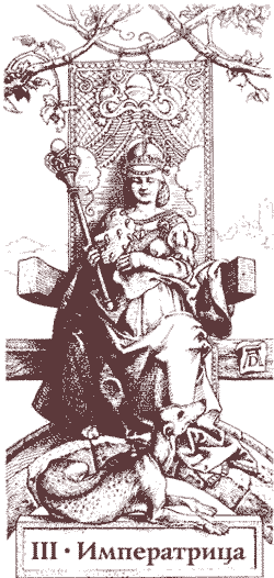 Традиционно образ Императрицы воплощает интеллектуальные достоинства людей и их лучшие качества (понимание, доброта души, щедрость, желание служить добру); достоинства, присущие левретке (собаке), растянувшейся у ног женщины, твердо сидящей на троне. Благородное животное, соотносящееся с Луной, и поэтому инстинктивно также указывает на верность, преданность моральным принципам и способность пожертвовать собой во имя идей.